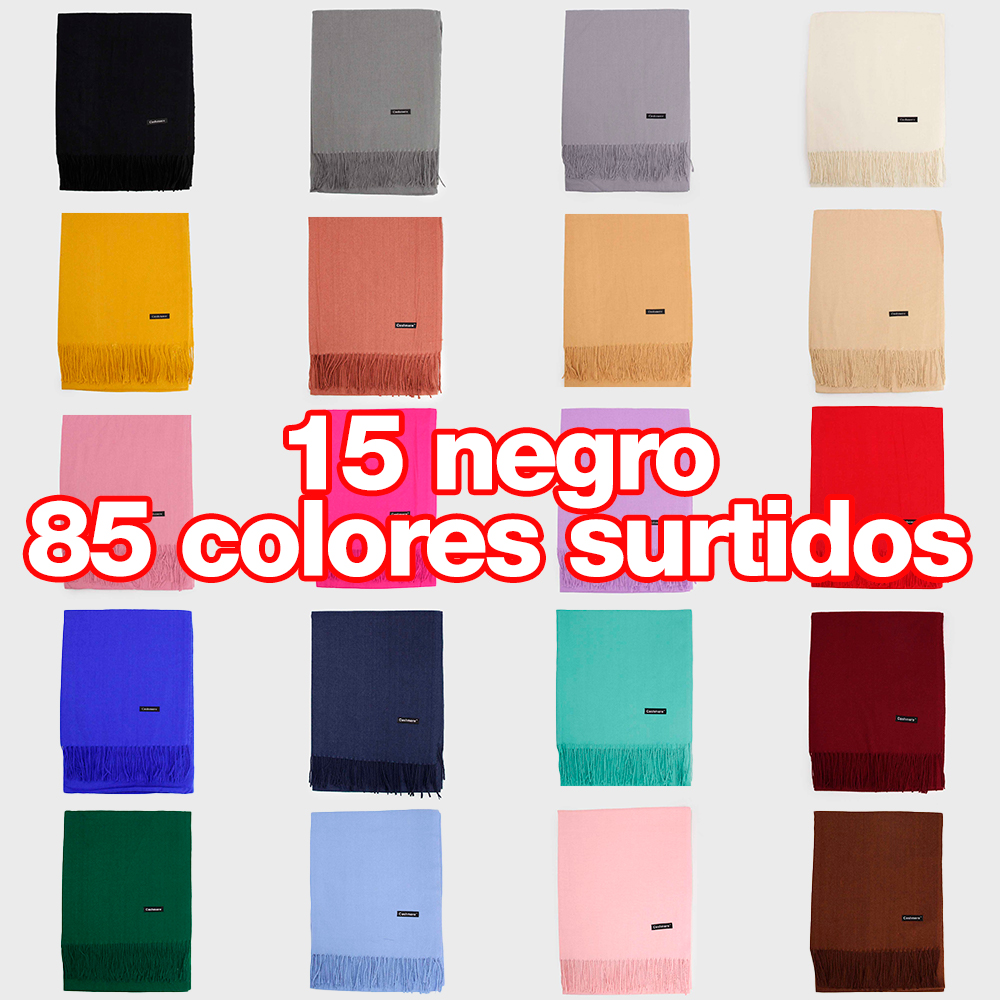Embalaje incluye 100 cashmere colores surtidos. Te aseguramos 15 color negro y 85 colores surtidos según disponibilidad