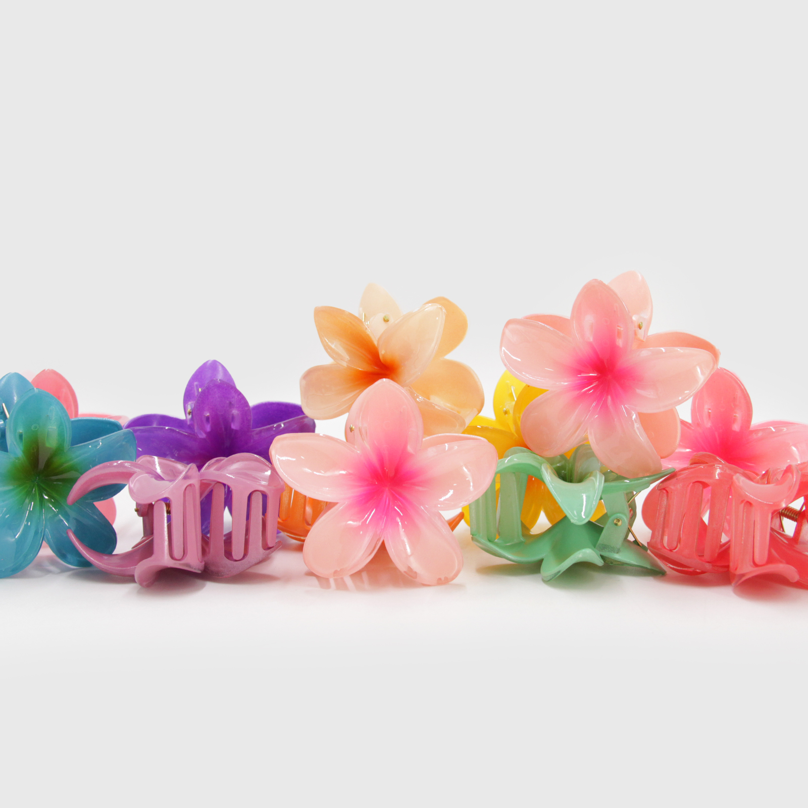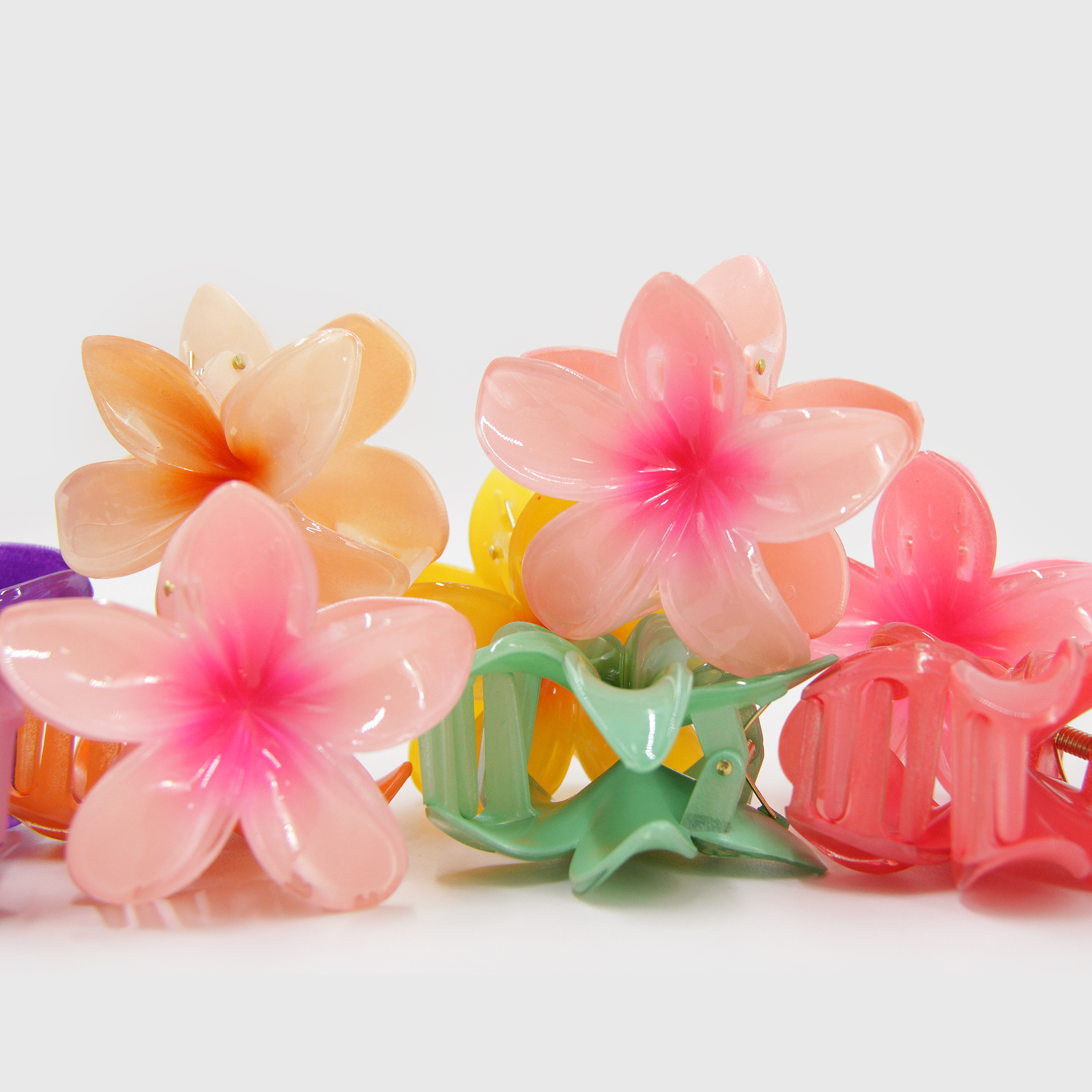 Pack 12 hair clips flor hawaina surtido 7,5cm