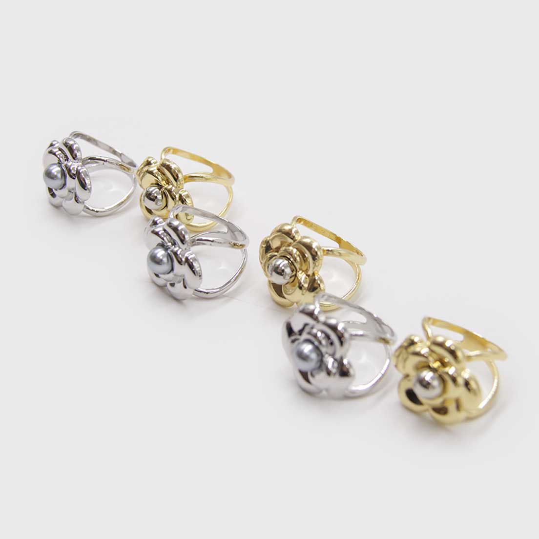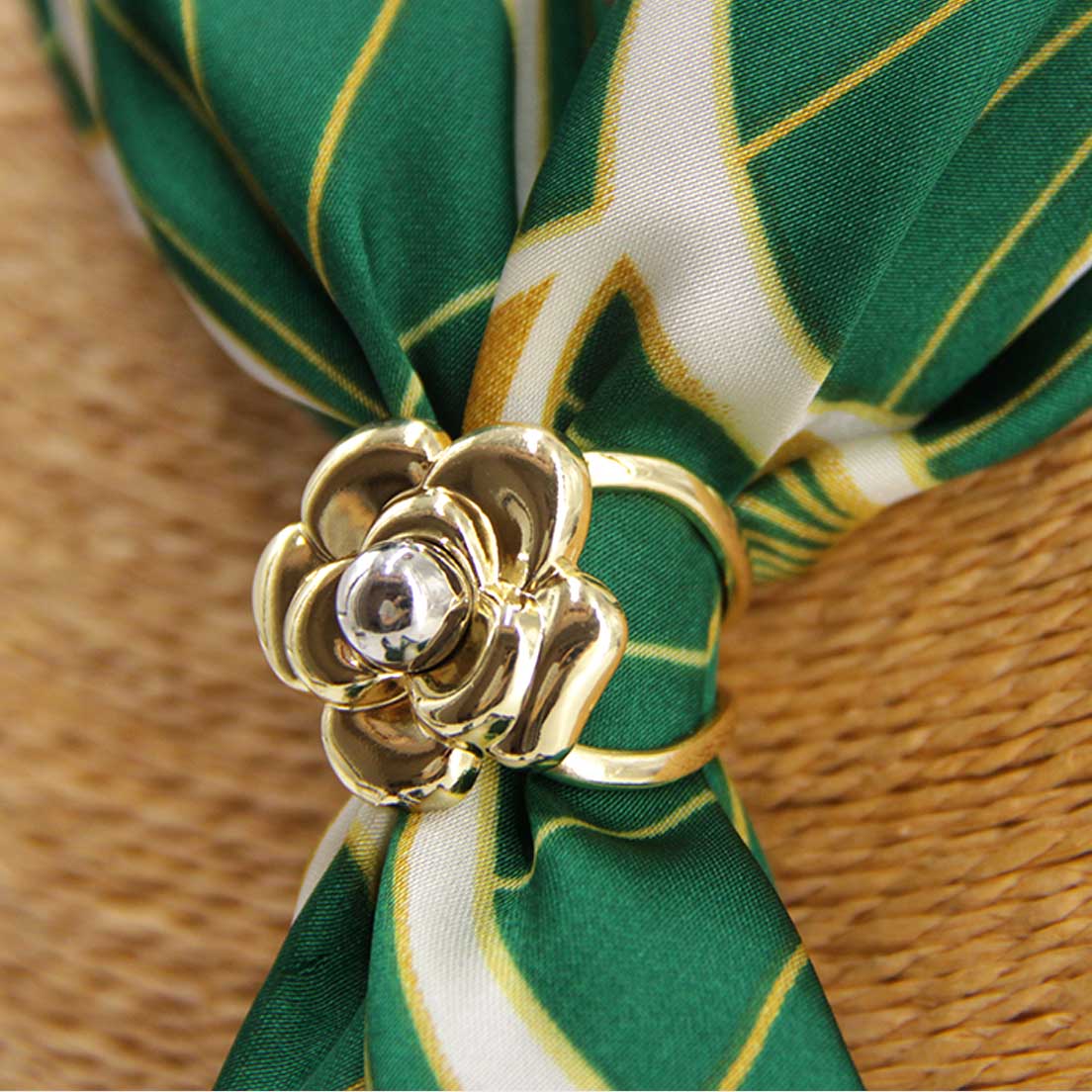 Pack incluye 6 pasa pañuelos de flor de (3 plaetados y 3 dorados)