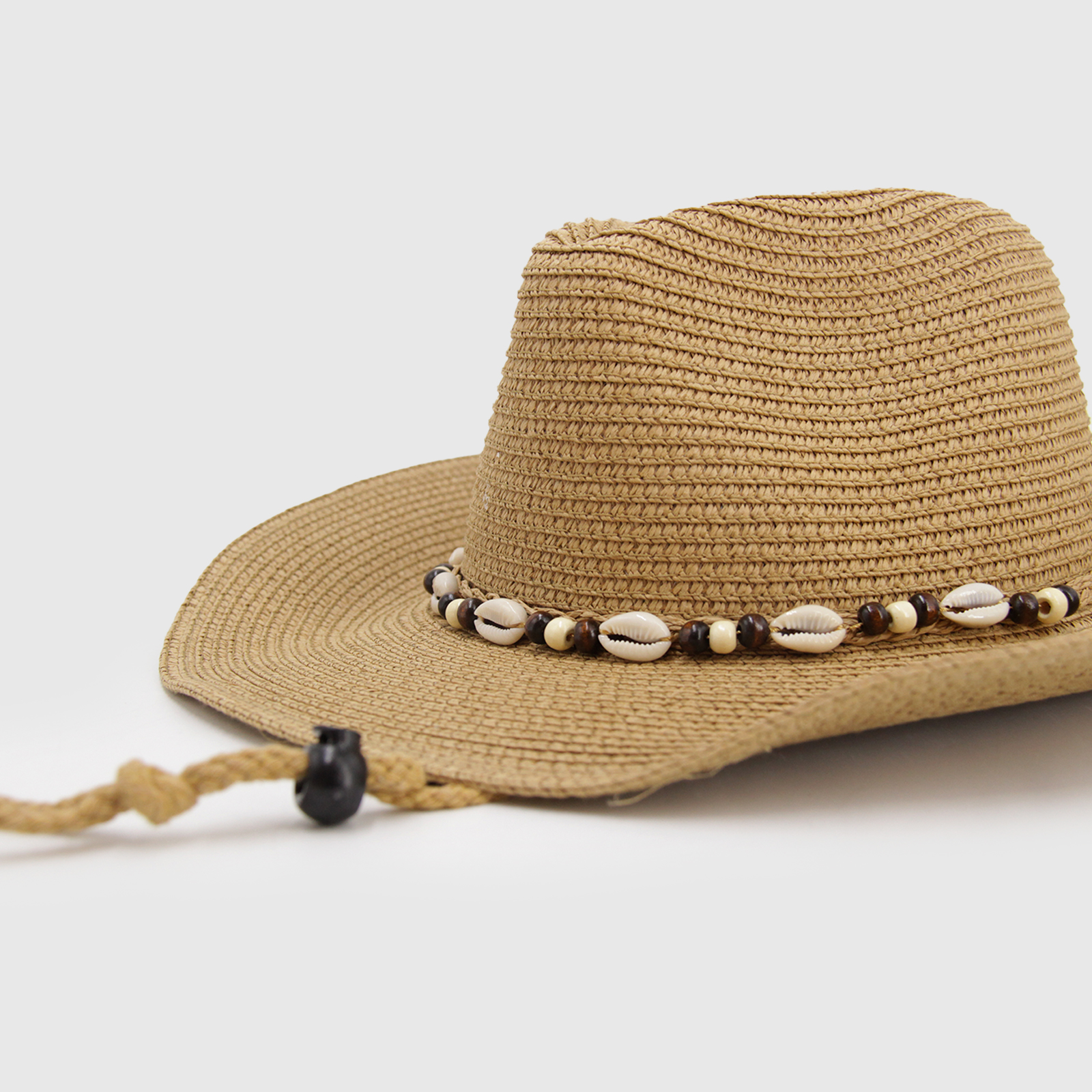Sombrero vaquero rafia cinta conchitas marinas